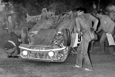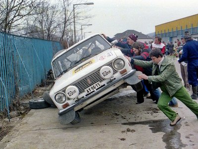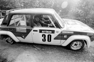Valójában csak két versenyző tudott Ladával raliban abszolút bajnoki címet szerezni: egyikük a képen látható Hideg János (ő kétszer is). A képkivágás nem túl jó, ellenben jól látszik: Hideg defektet kapott