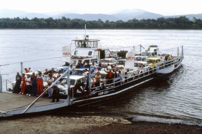 A Budapest Rali mezőnye a szobi kompon. Tessék megkeresni a nem-Ladákat – nincs sok belőlük