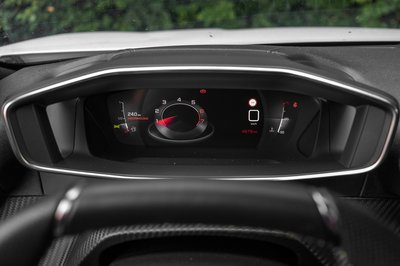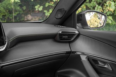 Furcsamód a műszerfal zöld varrása csak az utas előtt látható, a vezető előtt már nem tér vissza, de alapvetően kellemes a Peugeot belső