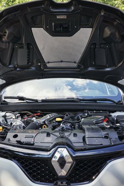 A szénszál-erősítéses motorháztetőbe NACA légbeömlő simul, ami hűti a motor turbó felőli oldalát, de nem zavarja a légáramlást
