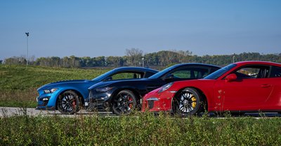 A Porsche 2014-es, a GT350R 2018-as, míg a GT500 vadonatúj - de ez a lényegen mit sem változtat