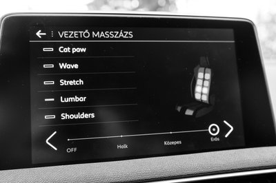 A masszirozó funkció gombja valójában csak felhozza ezt a menüt a képernyőn, és itt kell bekapcsolni a megfelelő masszírozó funkciót