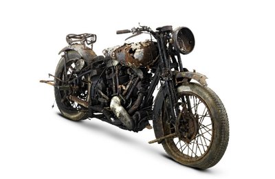 Dupla hátsó kerekű, négyhengeres Brough Superior BS4, így fellelt állapotban is legalább 35 millió forintot ér