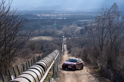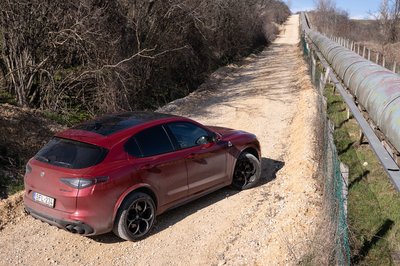 Versenypályára nem való, sima földúton viszont nem jön zavarba, pedig egy Giulia QV itt már tojáson lépkedne