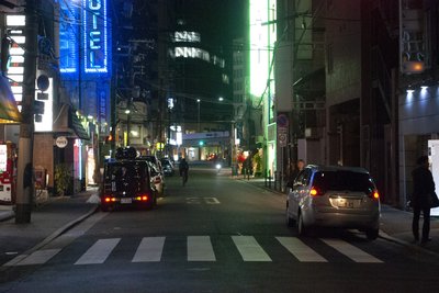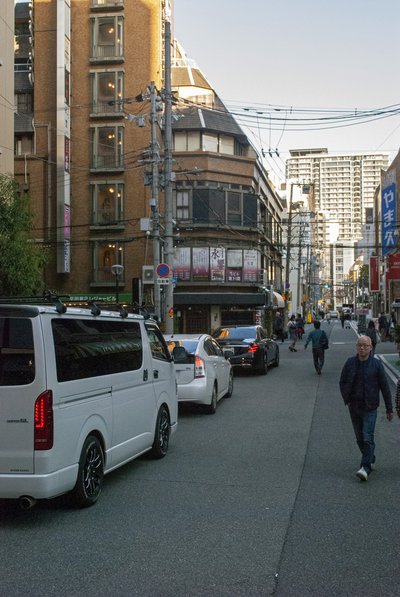Az olvasó most rám kell, hogy hagyatkozzon: balra egy combini (bolt), mellette ejtőzik a nép.