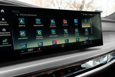 Mint a borsodi falvakban, az i7-ben is a kristály a fő motívum: a Bar mellett az ajtópanelre költöztetett ülésállító gombok, az iDrive tekerője és az irányválasztó billenőkapcsoló is csiszolt üveg.