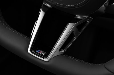 A normál verziókban kétküllős a kormány, de ez az áttört, finoman kidolgozott M-es az igazi