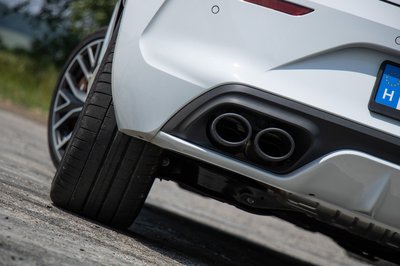 Néhány szürke elem és a furcsa logó az orrán, máskülönben jól leplezi a 300 lóerőt