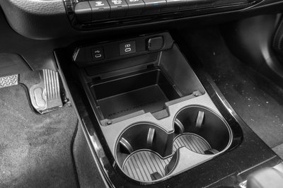 Két USB C csatlakozó a könyöklő alatti rekeszben