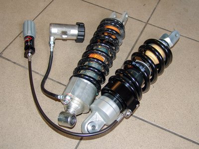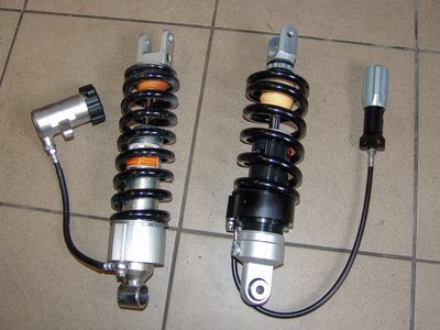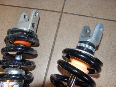Balra a Suzuki DL650 gyári központi rugóstagja, mellette a tulajdonosra szabott darab