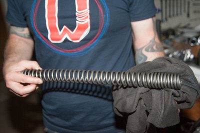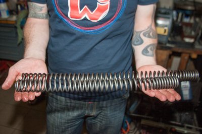 A gyári és a tuning rugó egymás mellett mintha nem is egy motorhoz tartoznának, a hosszuk sem egyforma. A cserével viszont lényegesen jobb lett a motor eleje