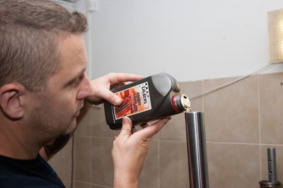 Feltöltés olajjal. Kulcsfontosságú az olaj fölötti légrés pontos beállítása