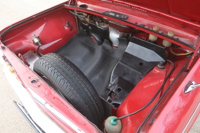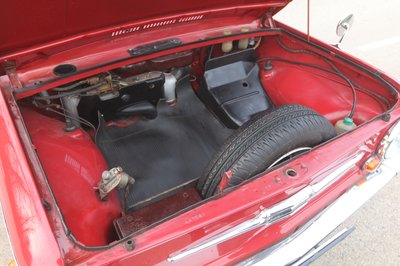 A pótkerék a gyűrődő zónában van, később a motortérbe rakták. Itt van az akkumulátor is