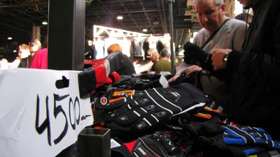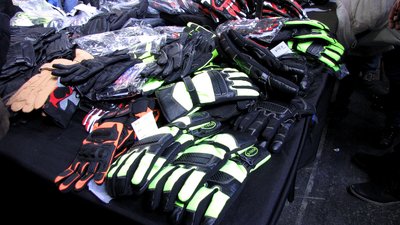 Láthatósági-sárga betétes kesztyűk az olcsóbb árfekvésű standokon is voltak