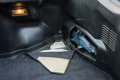 A hátsó ablakhoz külön mosótartály jár, mellette műanyag fedél takarja az emelőt