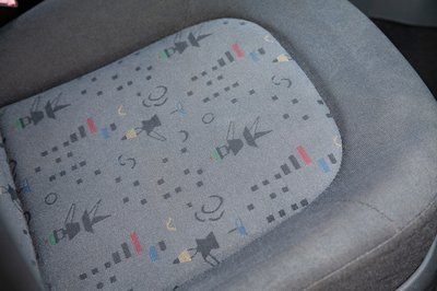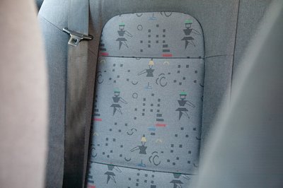 Az ülések visszafogott mintája egy váratlanul vidám pont a szürke beltérben