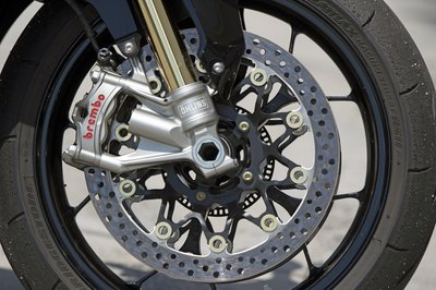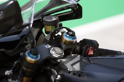 A motor legszebb része: felső polcos futómű félaktív Öhlins villával és Brembo Stylema féknyergekkel