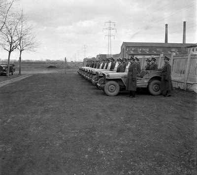 Frissen szolgálatba állított rendőrségi Willys Jeepek a Dagály utcai rendőr alakulatnál