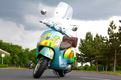 Az Azzurro 70 fntázianevű fényezés, a barna nyereg és a válltáskaként is használható doboz teszi azonnal megkülönböztethetővé