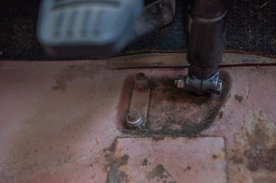 A kormányoszlop töve és mellette az egyik U csavar anyái