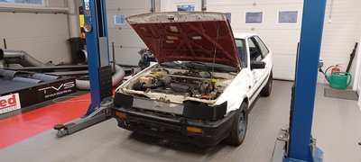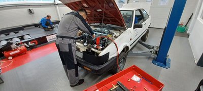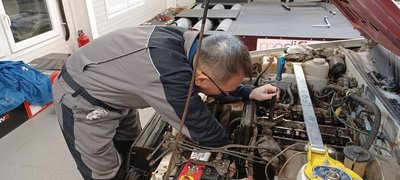 Jól felszerelt műhelyben rendes töltő is akad az indítózáshoz, hogy megnézzük a kompressziót