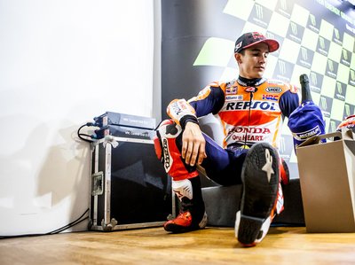 A világbajnok is ember. Márquez a sarokban ülve megvárta, míg sorra kerül, hogy kötelező jelleggel interjút adjon az egyik kiemelten kezelt spanyol televízió újságírójának
