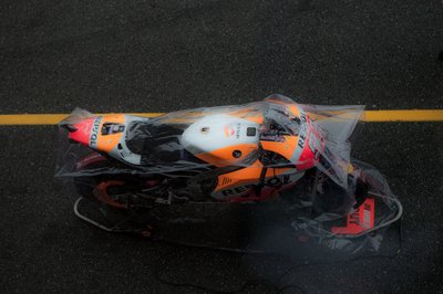 Egy fóliázott Repsol Honda csatára várva... eső esetén ő várta volna Márquezt