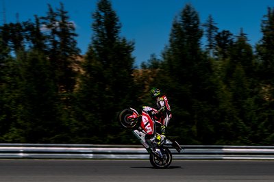 Alvaro Bautista koncentrál, és hasít a sötét, sűrű cseh erdőben. Az idei Cseh Nagydíj hétvégéjén változékony időjárás, néha szakadó eső, és nagyon párás levegő nehezítette a versenyzők életét