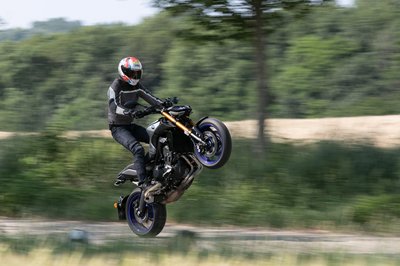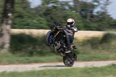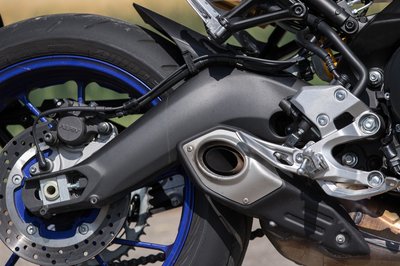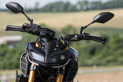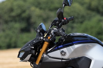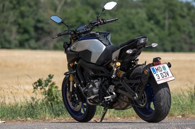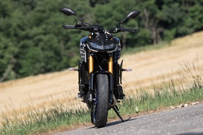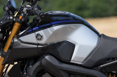Az Yamaha MT-09-en sokat dob az SP kivitelhez járó kék felni és ezüst tank, kevésbé bazári, mint a neon felni alapváltozat
