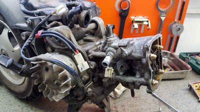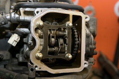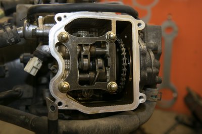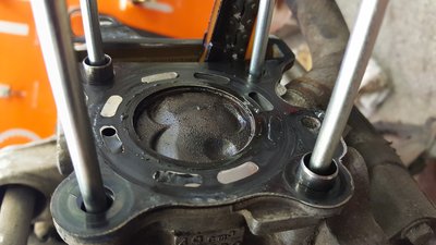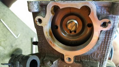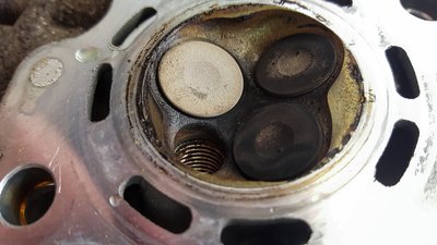 A kipufogószelep teljesen tiszta, arról leégett a koksz, a szívószelepeket viszont nehéz volt kiszedni: annyira kompakt a hengerfej, a két szelep között pedig annyira kevés hely, és olyan kicsik a szelepek, hogy a gyári rugóösszefeszítő célszerszámnak az