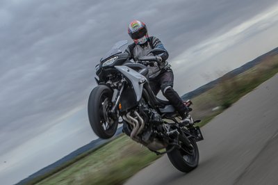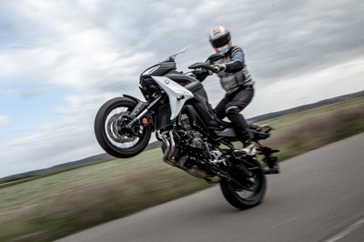 Oldalról nem annyira feltűnő, hogy a Tracer igazából egy magasított idomos MT09