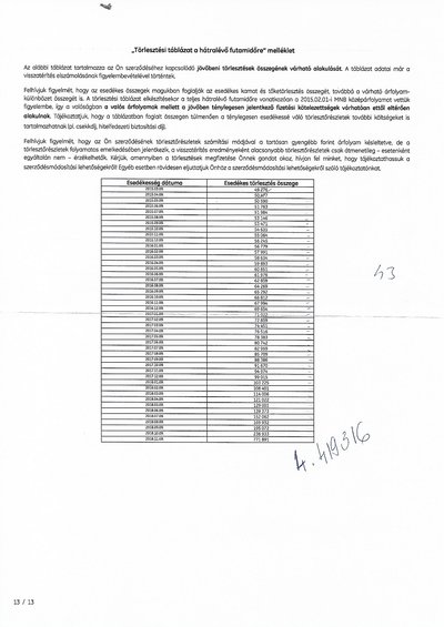Eddig a 2015-ös értesítőig már több mint 4,4 millió forintot fizettek ki Dóráék, és innen kezdődtek volna a táblázat alapján mutatott eszetlen magas törlesztők