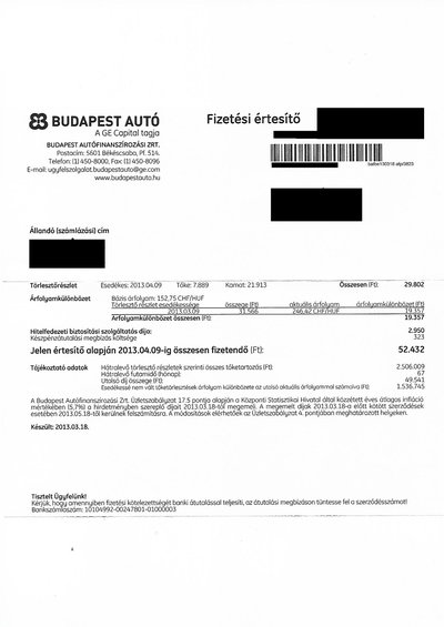 2013-ban már az egekben volt a svájci frank árfolyama, a tőketörlesztések árfolyamkülönbözete is elérte a másfél millió forintot. Hat év folyamatos törlesztés után, csupán 500 ezer forinttal csökkent az adósság