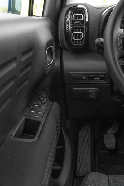 Az ajtó kemény műanyag burkolata jelzi, milyen árszinten járunk. A hátsó elektromos ablak extra