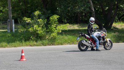 Körülbelül így viselkedik a motor, ha helyesen használjuk a fékeket. Az első teleszkóppár összeül motor feneke kicsit megemelkedik, mert áthelyeződött a súlypont az első kerékre. A BMW-vel szinte lehetetlen hibázni, nagyon erősek a fékei és az új, tapadós