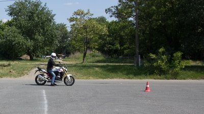 Iván Suzuki SV650-e hagyományos, nem integrált fékkel készült. Iván itt mindkét féket használja. A lassítás kezdetekor inkább a hátsót, majd fokozatosan az első féket használta. Meg is állt 12 méteren belül