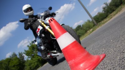 Mindkét féket használva, ötvenes tempóról akár féltáv környékén megáll a 240 kilós motor