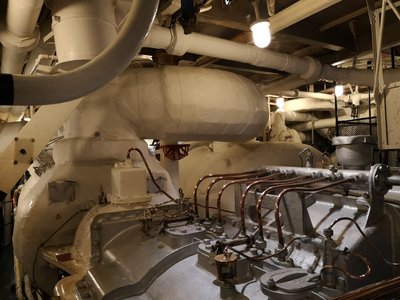 Gőzgenerátorok egyenárammal, két dízel aggregát pedig váltóárammal szolgálta a hajó működését