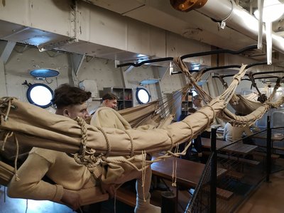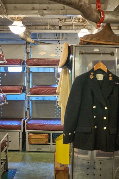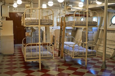 A tisztesek és tisztek szálláshelyei kényelmesebbek, mint a legénységé, de csak a kapitánynak és az admirálisnak van saját kabinja