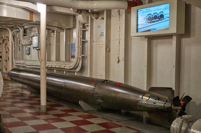 Egy átépítés során leszerelték a torpedóvetőket, eredetileg azonban oldalanként három-három csőből indítottak „halacskákat”. Hat kilométerre is elment egy ilyen, de irányítás nélkül, tehát találni csak sokkal közelebbről lehetett