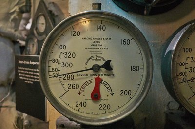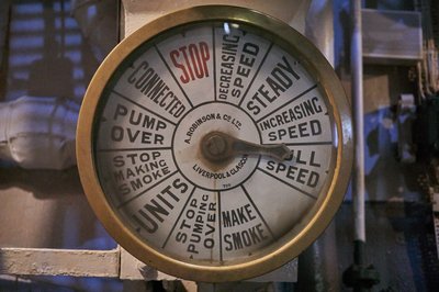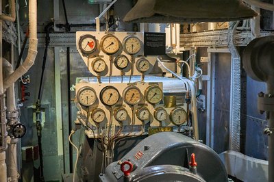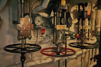 A fűtők jelzőórája pont olyan, mint amit a filmekben látni, csak a „make smoke” utasítás jelzi, hadihajóról van szó
