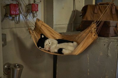 A macska nem igazi, de teljesen komoly, tényleg tartottak szőrös vadászt is a fedélzeten, és neki nem kellett osztoznia a függőágyon