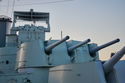 A másodlagos tüzérség eredetileg hat, majd négy pár négyhüvelykes (102mm) lövegből áll, melyekkel repülőre, hajóra és földi célpontra is lehetett lőni. Egy üteget működésben tartanak, díszlövések leadására
