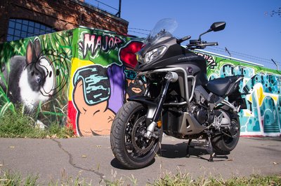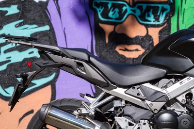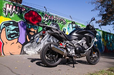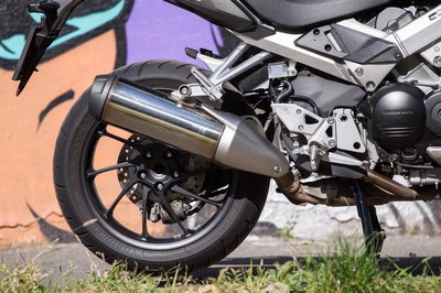 A kipufogó így méltatlanul sokat kitakar a kerékből, ha viszont feljebb rakják, nem lehet feltenni az oldaldobozokat