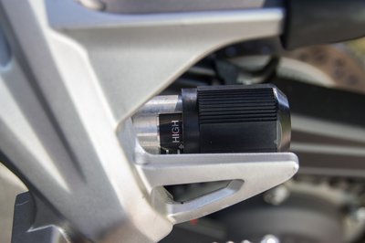 Az utaslábtartó alá rejtették a központi rugóstag előfeszítését állító kézikereket. Szép és okos megoldás