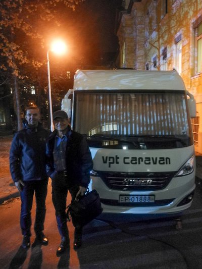Menet közben a sofőr ülés hátuljára biggyesztett inverterből kaphatunk 230v-ot