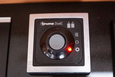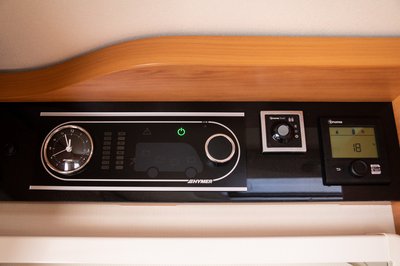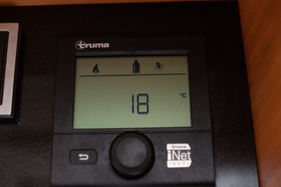 A fűtés és a melegvíz termosztátja. Ha lenne benne Truma klíma (a tetőklíma ebben Dometic), azt is vezérelhetnénk vele.