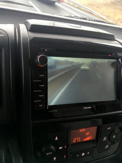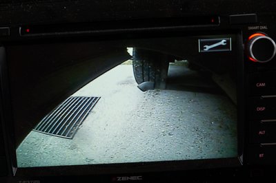 Menet közben a hátratekintő kamerát lehet kapcsolni. Jó cucc, csak lehetne nagyobb a fényereje