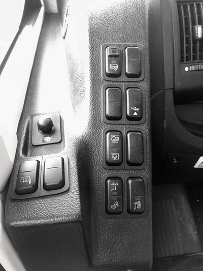 Bal felső a szennyvíz leeresztője, következő szint a lépcső behúzója, alatta a rádiót tudjuk üzemeltetni kivett slusszkulccsal, legalul balra a tolató- és a szennyvíz kamera váltókapcsolója, végül a hátsó kamera világítása