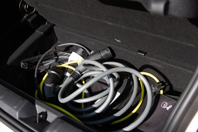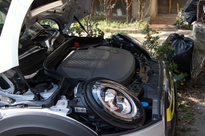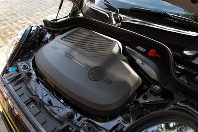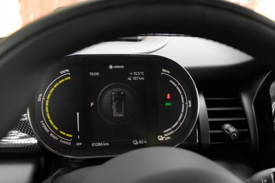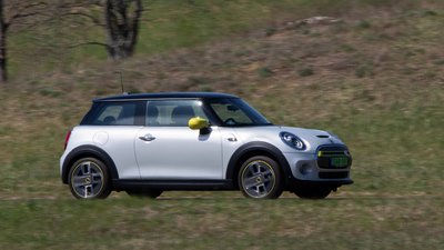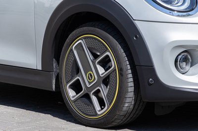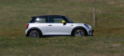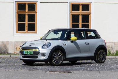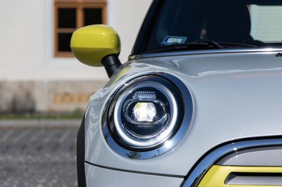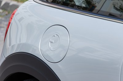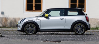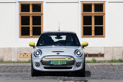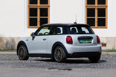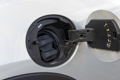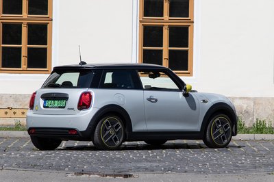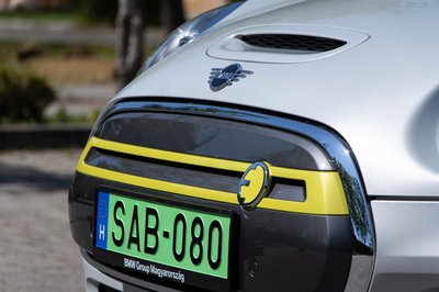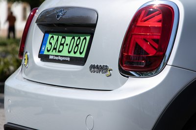 A belső égésű motorral szerelt Miniknek itt van az üzemanyagbetöltő nyílása, a Cooper SE-nek a töltő csonkja